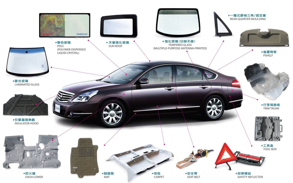 2001年:取得ISO-14001環境管理系統認證。 2002年:取得ISO-9001(2000年版)認證。 2003年:引擎蓋隔熱氈開發完成,開始量產。 2004年:與日本壽屋公司簽訂汽車地毯技術合作合約。 2004年:與日本豐和公司簽訂PSHELF、TRUNK SIDE TRUNK LID、TRUNK FLOOR技術合作合約。 2004年:與大陸柳州方盛實業簽訂車地毯及吸音材技術合作合約。 2005年:取得TS-16949BSI國際認證。 2006年:一体射出膠條玻璃開發完成並導入量產。 2007年:PVC膠皮地毯及新式防火牆材料開發完成並導入量產。 2007年:取得日本JIPM TPM優秀賞。 2009年:取得ISO-9001(2008年版)認證。 2009年:SUBARU FORESTER 膠合天窗回銷日本。 2012年:前處理設備SL-3更新(三角窗玻璃切製印刷線)。 2012年:完成PDLC變色玻璃開發,並開始量產。 2013年:前處理設備FR-1更新(前後擋玻璃切製線)。 2013年:NISSAN ROUGE 後擋玻璃回銷日本。 2015年:前處理印刷設備更新(前後擋玻璃印刷線)。 2015年:前處理切製設備SL-1更新(側窗玻璃切製線)。 2018年:取得ISO 9001/ITAF 16949(2016年版)認證。 2018年:取得ISO 14001(2015年版)認證。 2018年:前處理二次印刷設備更新(後擋玻璃印刷線)。 2018年:設置RBT強化爐。 2019年:前處理二次印刷設備更新(後擋玻璃印刷線)。 2019年:設置RBT強化爐。 2019年:前處理SL-3線乾燥設備更新(F/P,R/P)。 2020年:設置BL-3 (EPBL)膠合玻璃模壓爐。